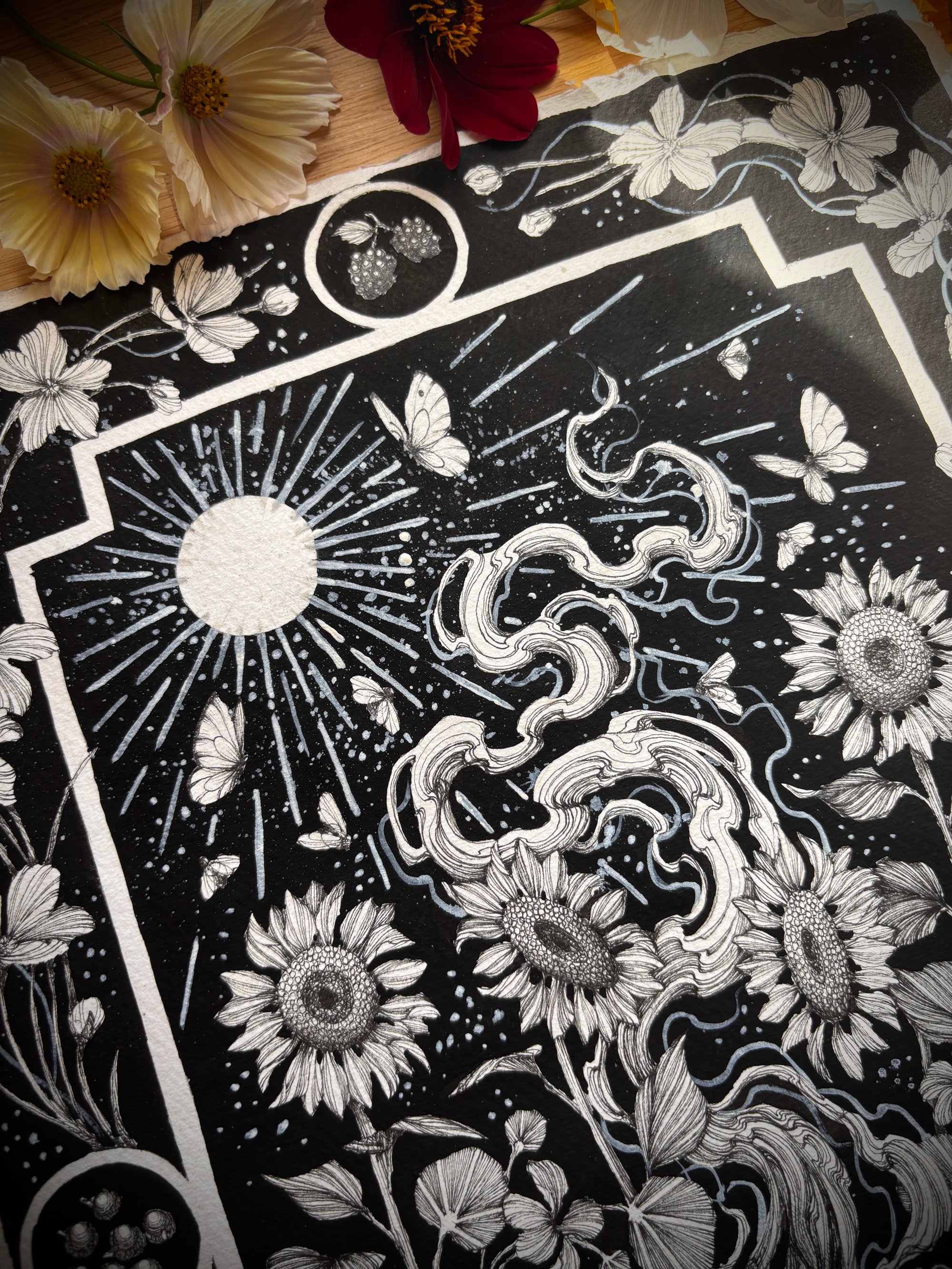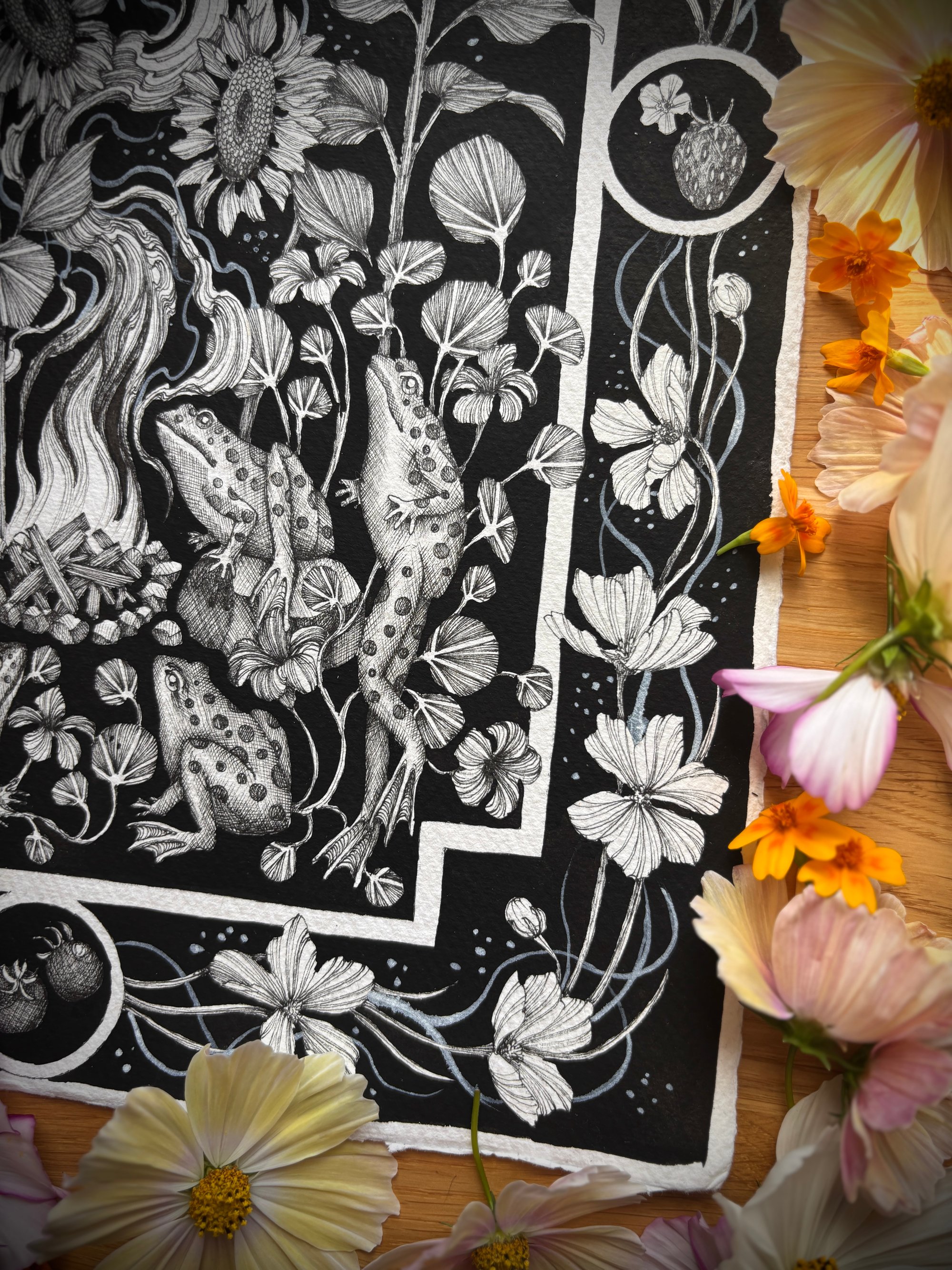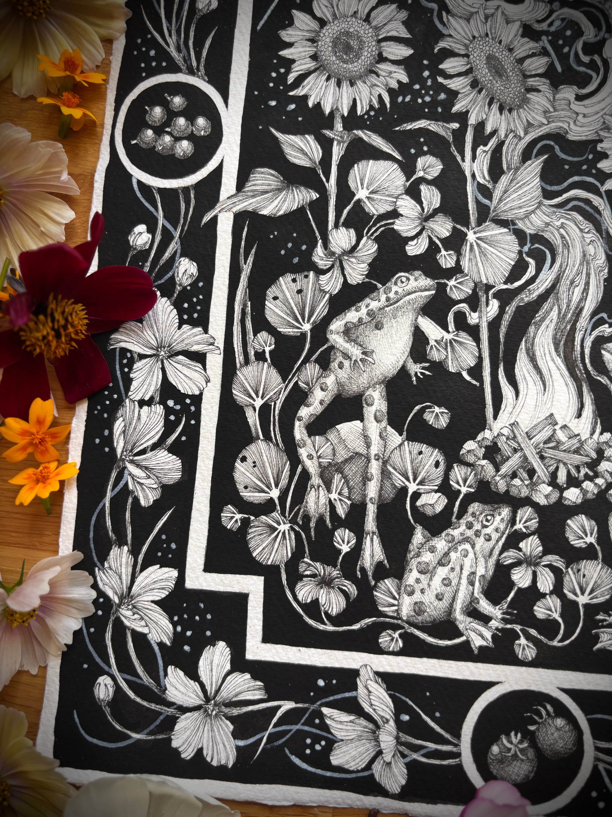 I try to make sure all my reproductions are as close to the original as possible, however please note that the artwork pictured above is the original drawing. The print you receive will have some slight differences, for example the edges will be straight rather than hand ripped like in the photo.